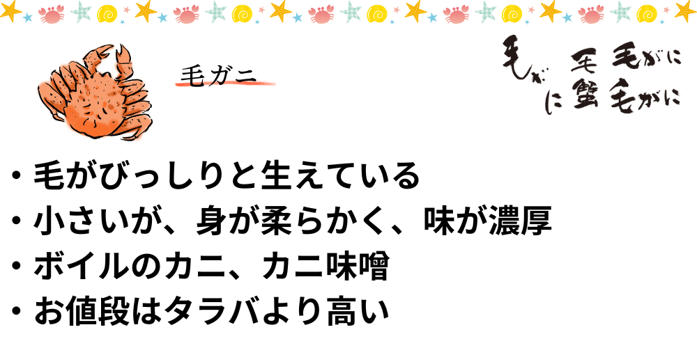 タラバガニ・ ズワイガニ・ 毛ガニ・ 花咲ガニ |