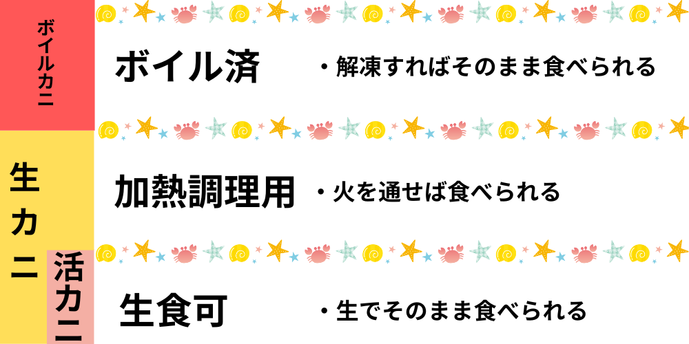 ボイルカニ | ボイルカニ・ 生カニ(調理済み・生食可) |