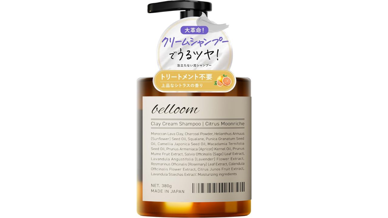 belloom(ベルーム)クリームシャンプーは、泡立たないクレイクリーム処方で、髪の広がりを抑えながらうるツヤ髪へ導くオールインワンタイプのヘアケアアイテムです。モロッコ溶岩クレイ、炭、海シルトの洗浄成分が頭皮や毛穴の汚れをしっかり除去し、頭皮環境を整えます。さらに、8種の海藻エキスと10種のボタニカルオイルが、髪と頭皮にたっぷりの栄養とうるおいを与え、美しい素髪へ。シャンプー・コンディショナー・トリートメント・ヘアパック・頭皮ケア・ヘッドスパなど1本8役で、忙しい毎日でも自宅で本格サロンケアが叶います。合成着色料・鉱物油・パラベン・シリコーン・合成ポリマー不使用の5つのフリー処方で、敏感な髪や頭皮にもやさしく、すべての髪質に対応しています。